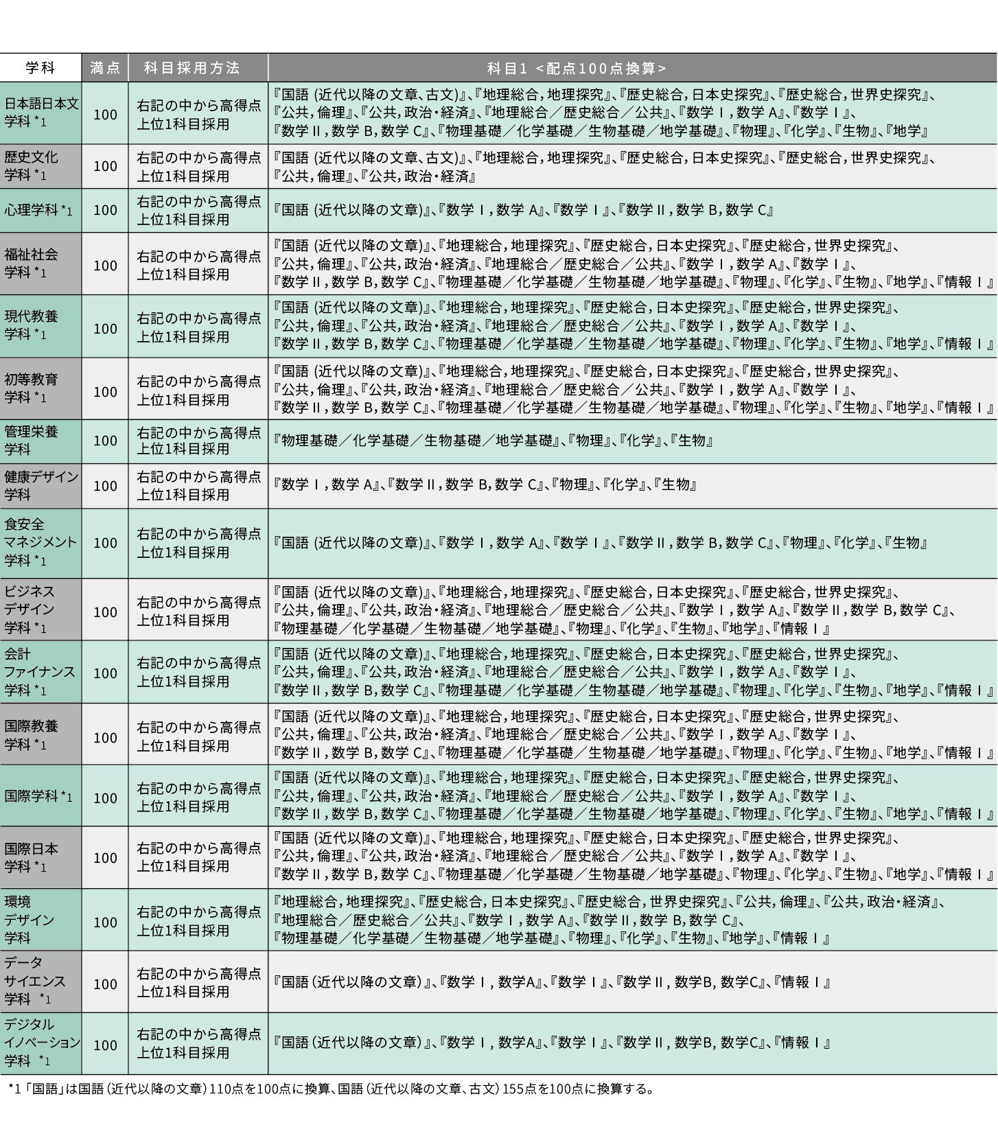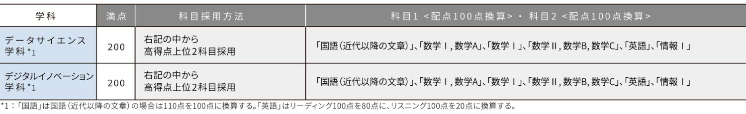 各学科の指定する2026年度大学入学共通テストの上位1科目で選考。