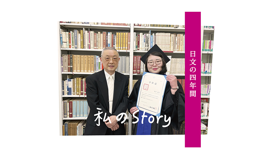 学びの集大成として、卒業論文にて「日本語の依頼・要求表現」をテーマに研究を進めています。日本語教育学分野でも学びを諦めず、今秋に「日本語教育能力検定試験」に挑戦します。卒業後は、日本語という“当たり前”について考え続けたことで身についた「物事を多面的に見る力」を活かし、社会に貢献したいです。 |